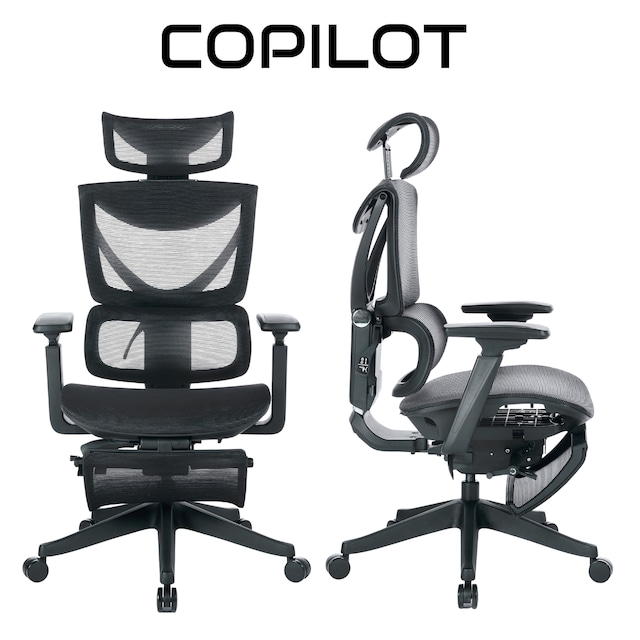 COPILOT オフィスチェア メッシュ 椅子 チェア キャスター ロッキング リクライニング ハイバック ランバーサポート 人間工学 ブラック 黒 SLEC-01MBK (高耐久強化強化メッシュ網目)