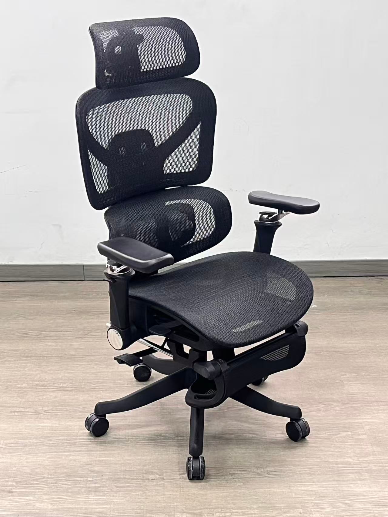 【機能】長時間の作業をサポートする機能を多数搭載。ヘッドレスト、リクライニング、背凭れと座面奥行が調整可能、ランバーサポート、2軸で360°回転し自由自在に動かせる5Dアームレスト、フットレスト付き
